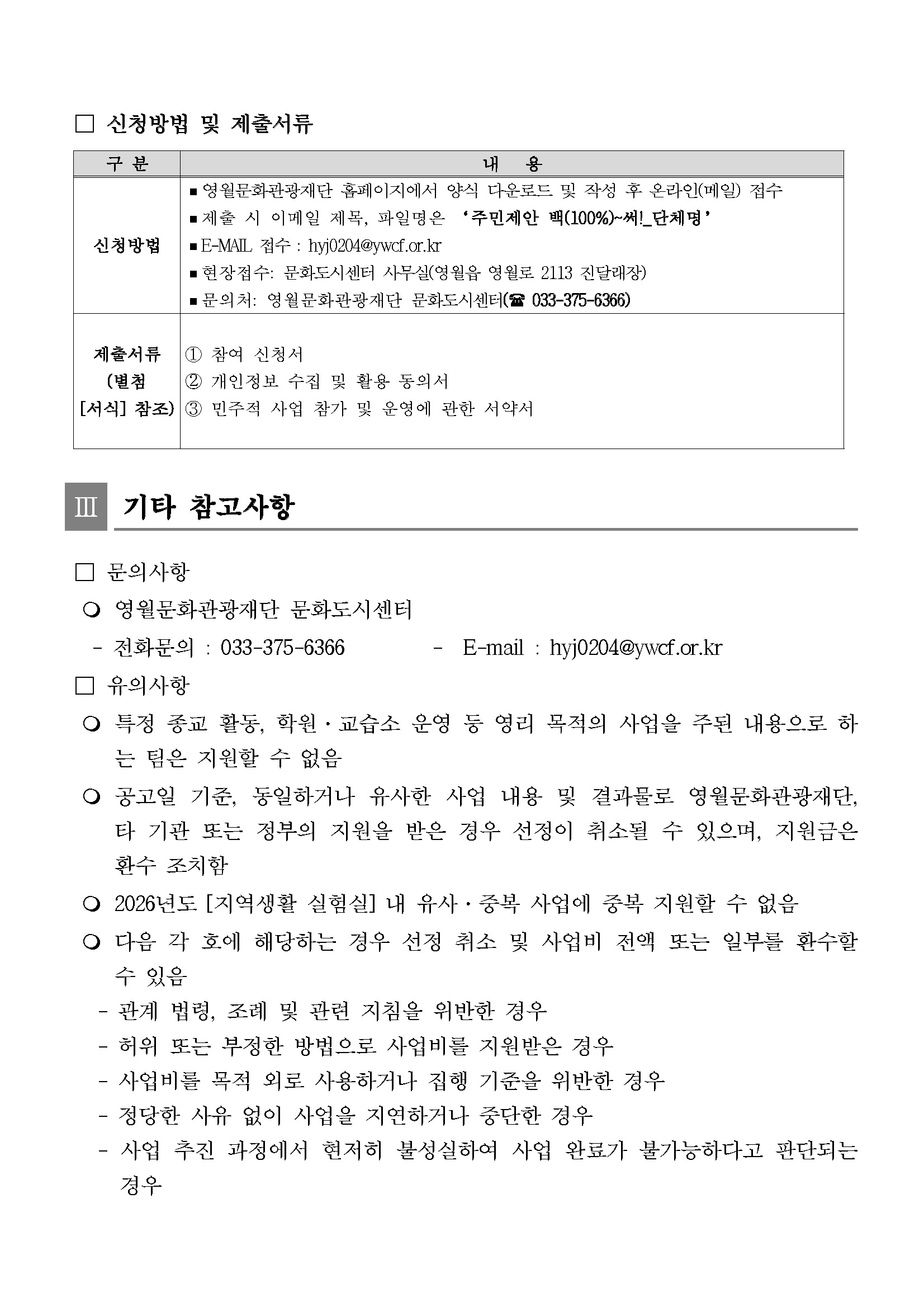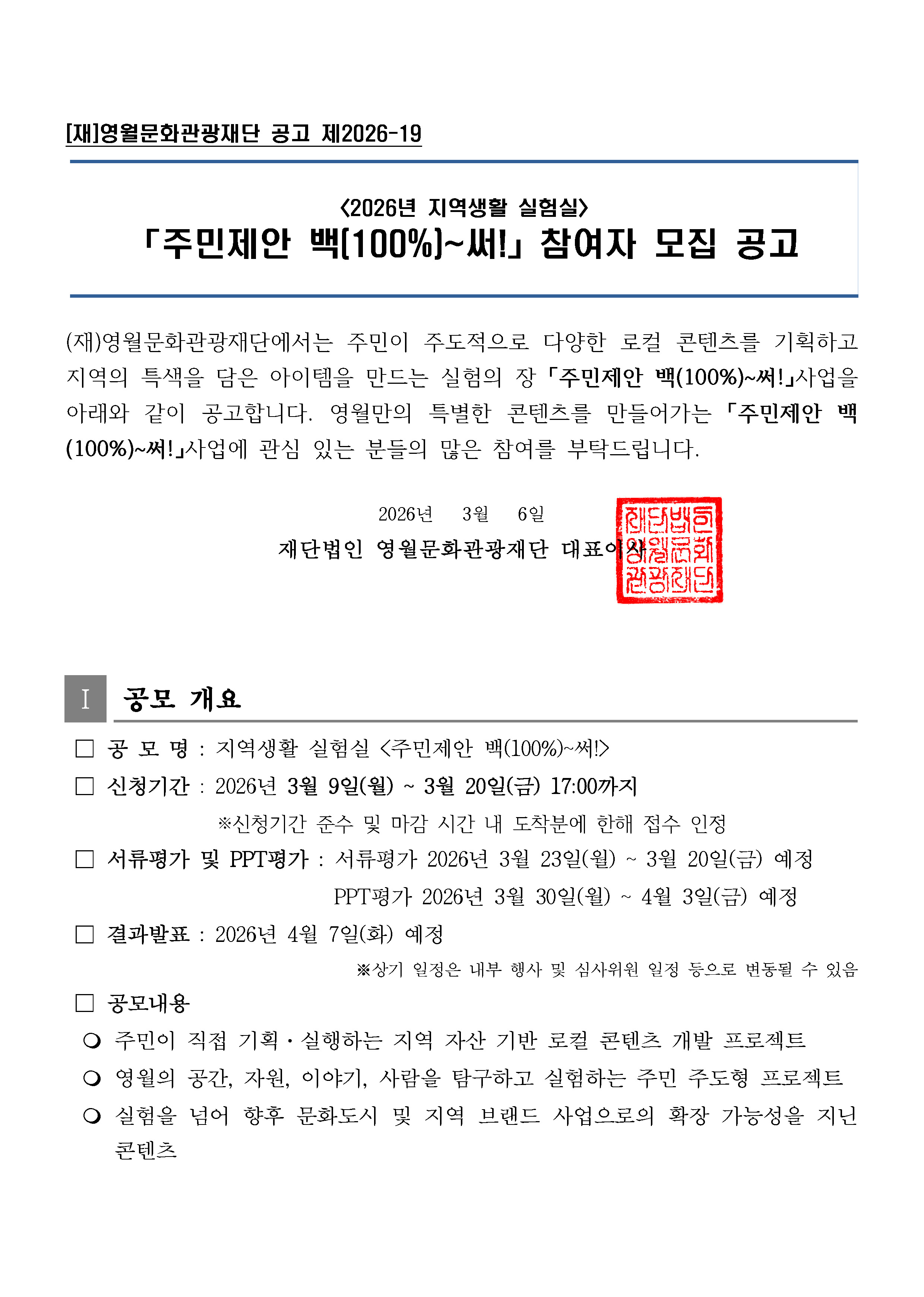 [문화도시 영월] 지역생활실험실 「주민제안백(100%)~써!」 참여자 모집 공고