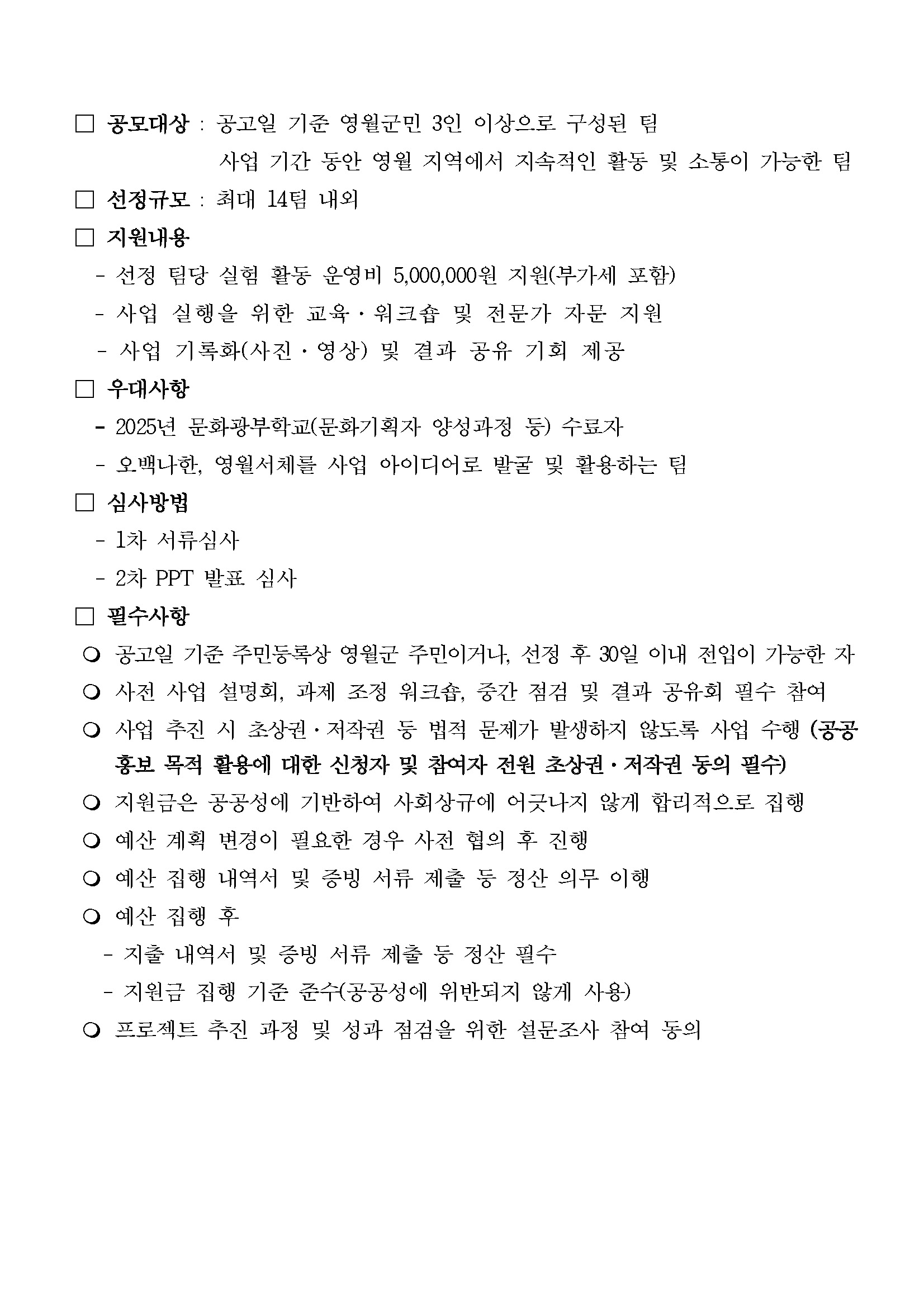 [문화도시 영월] 지역생활실험실 「로컬콘텐츠랩」 참여자 모집 공고