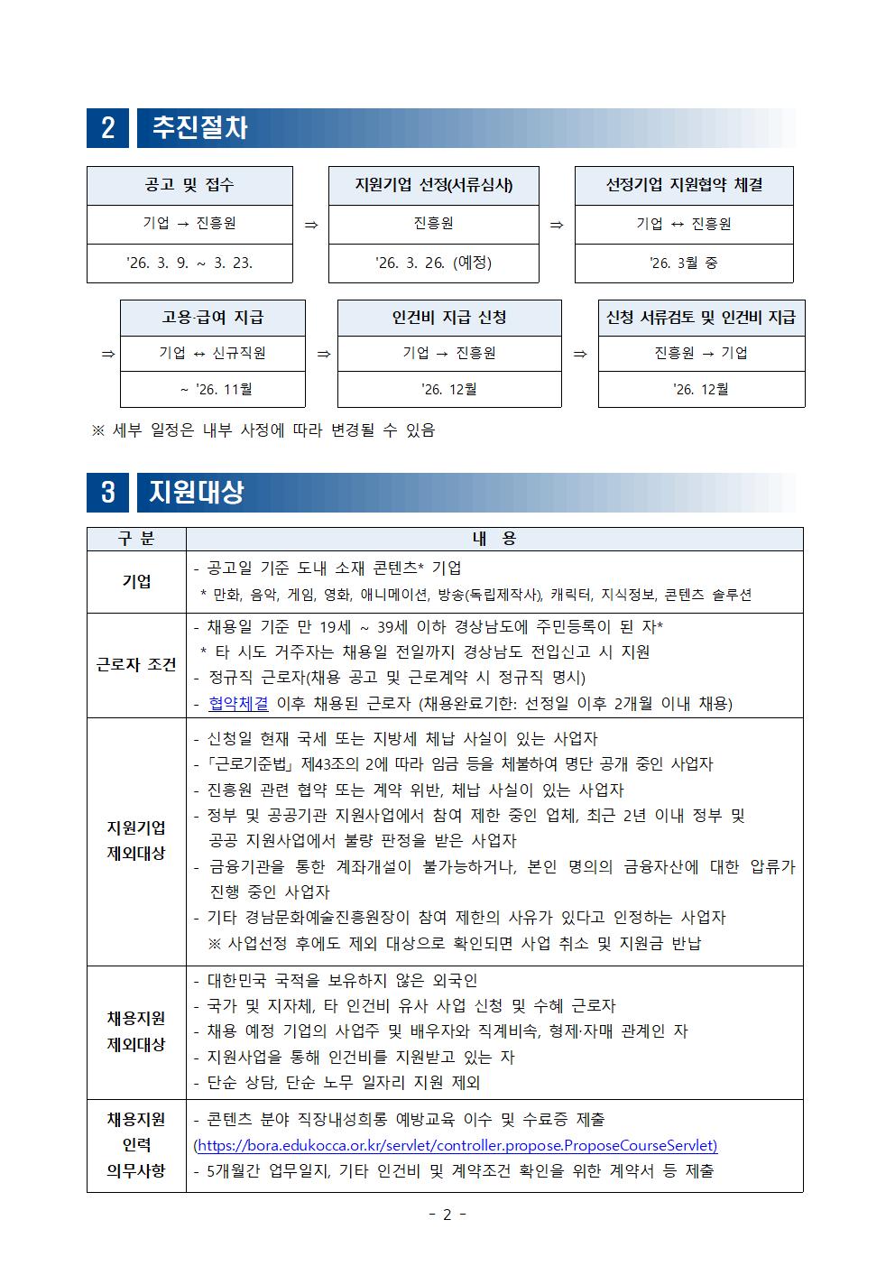 2026 문화콘텐츠분야 청년 일자리 지원사업 참여기업 모집 공고