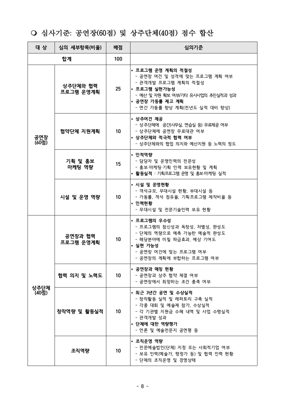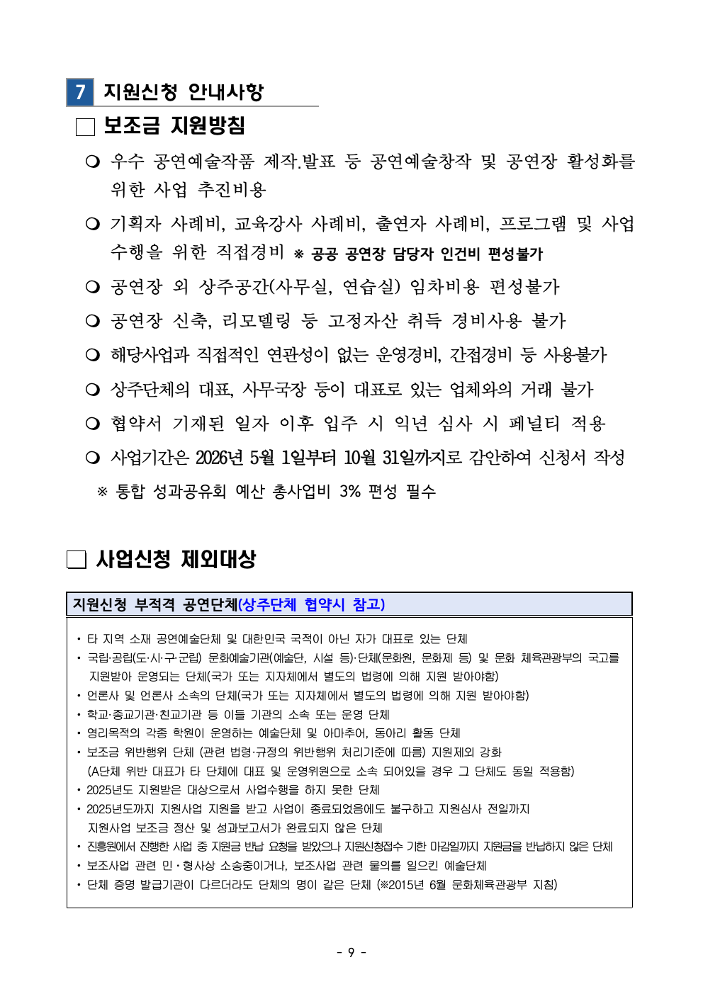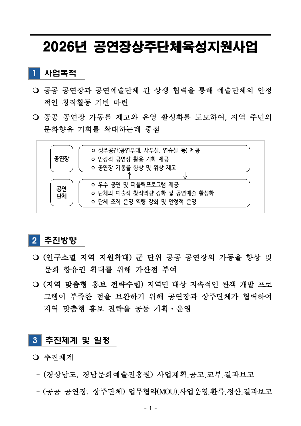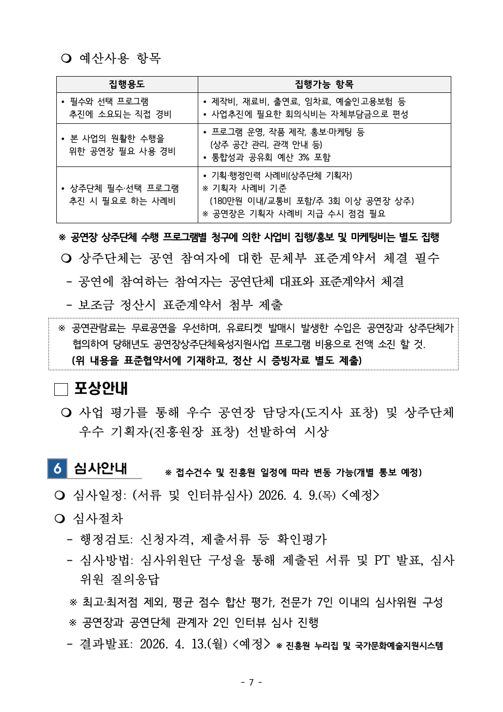 2026 공연장상주단체육성지원사업 추가공모 공고문
