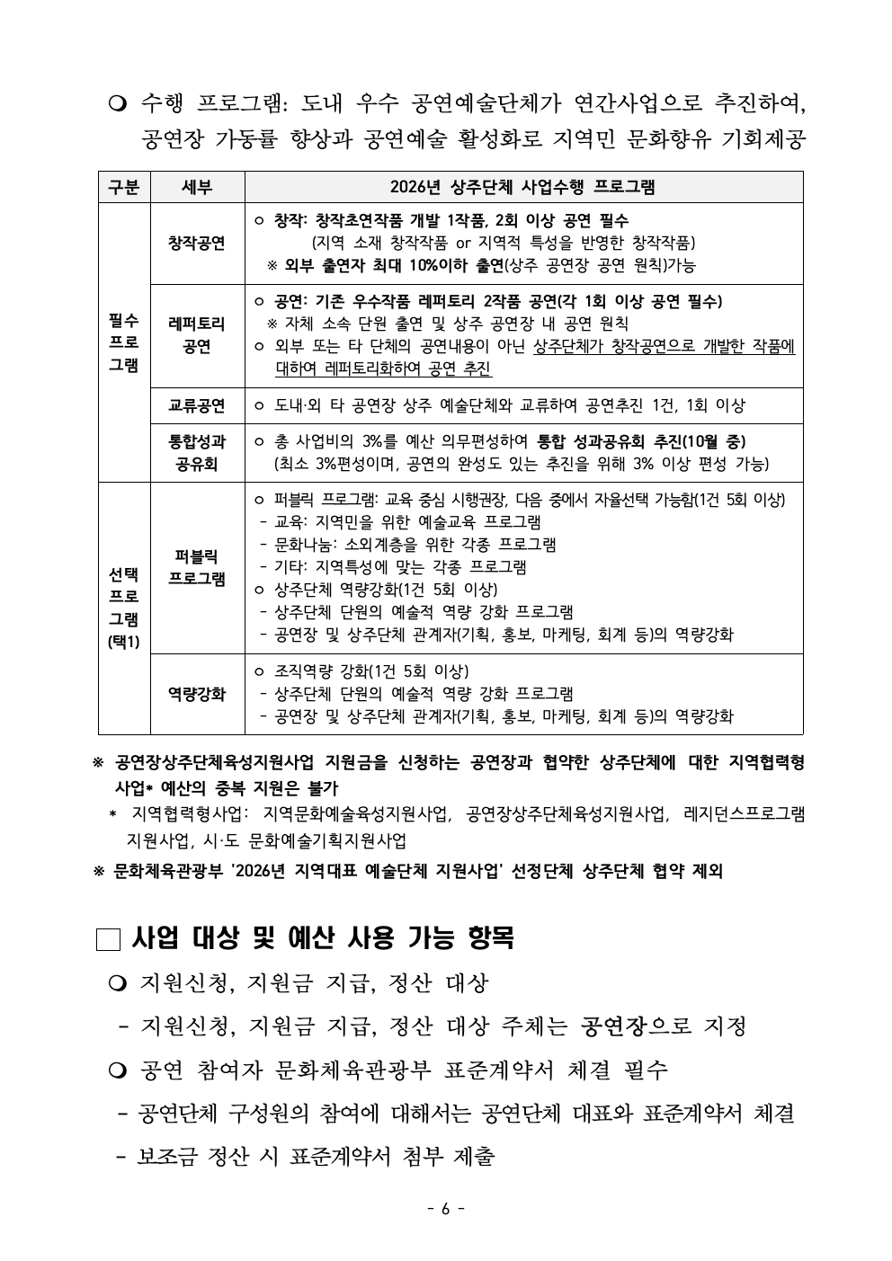 2026 공연장상주단체육성지원사업 공고