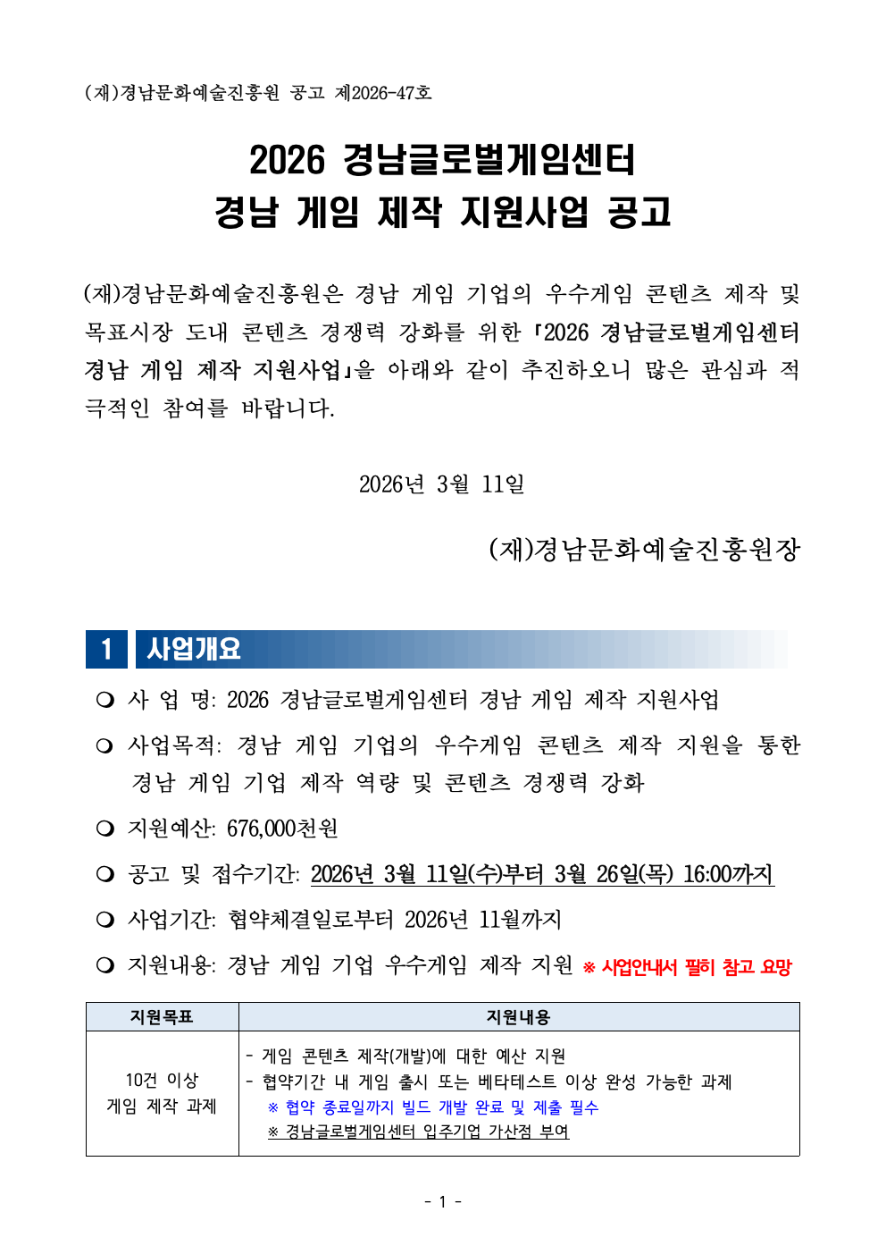 2026 경남글로벌게임센터 경남 게임 제작 지원사업 모집 공고