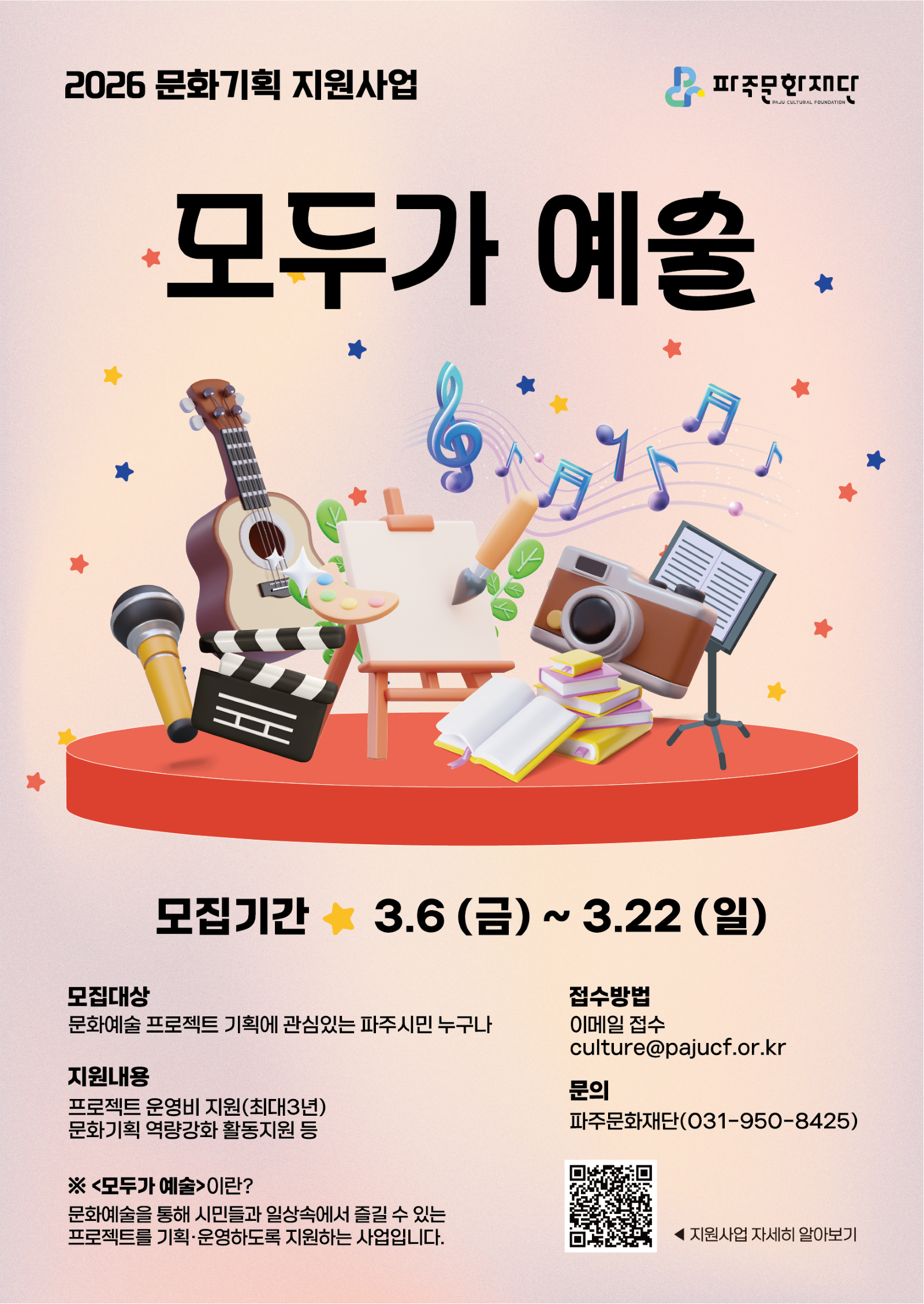 2026 문화기획 지원사업 <모두가 예술> 모집 공모
