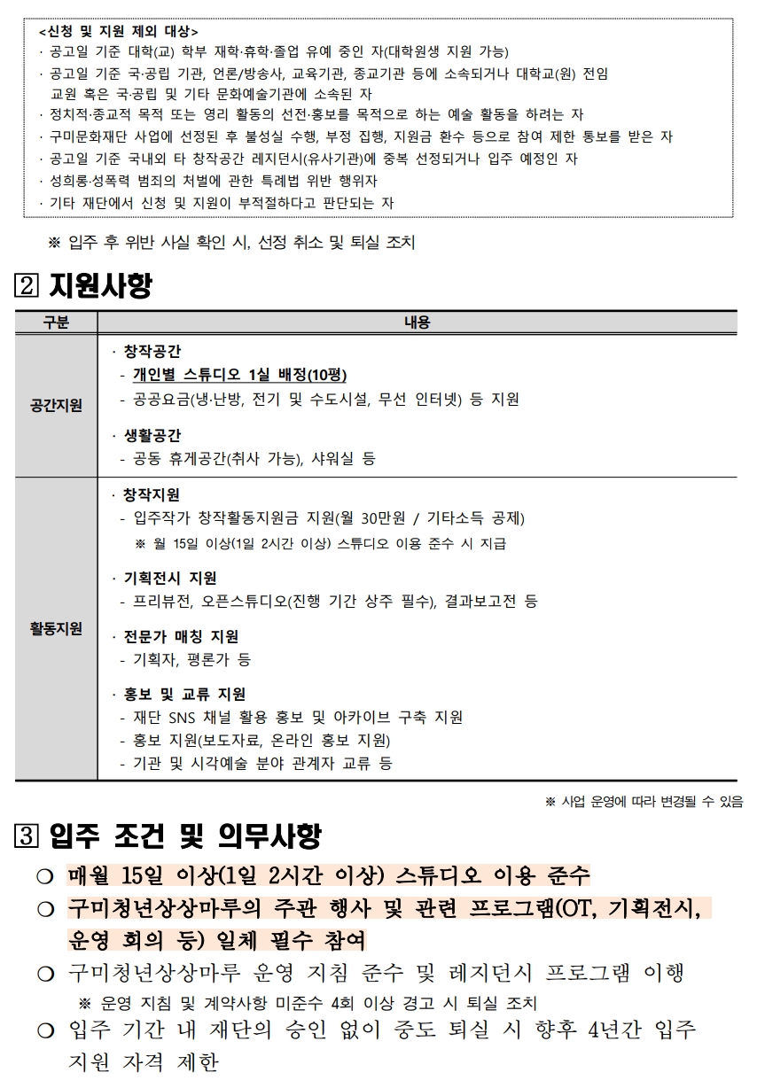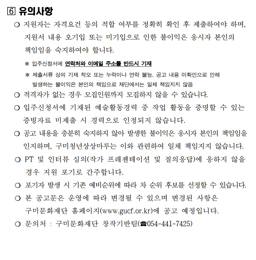 [회원등록공고] 청년예술인 레지던시 구미청년상상마루 2기 입주작가 2차 모집