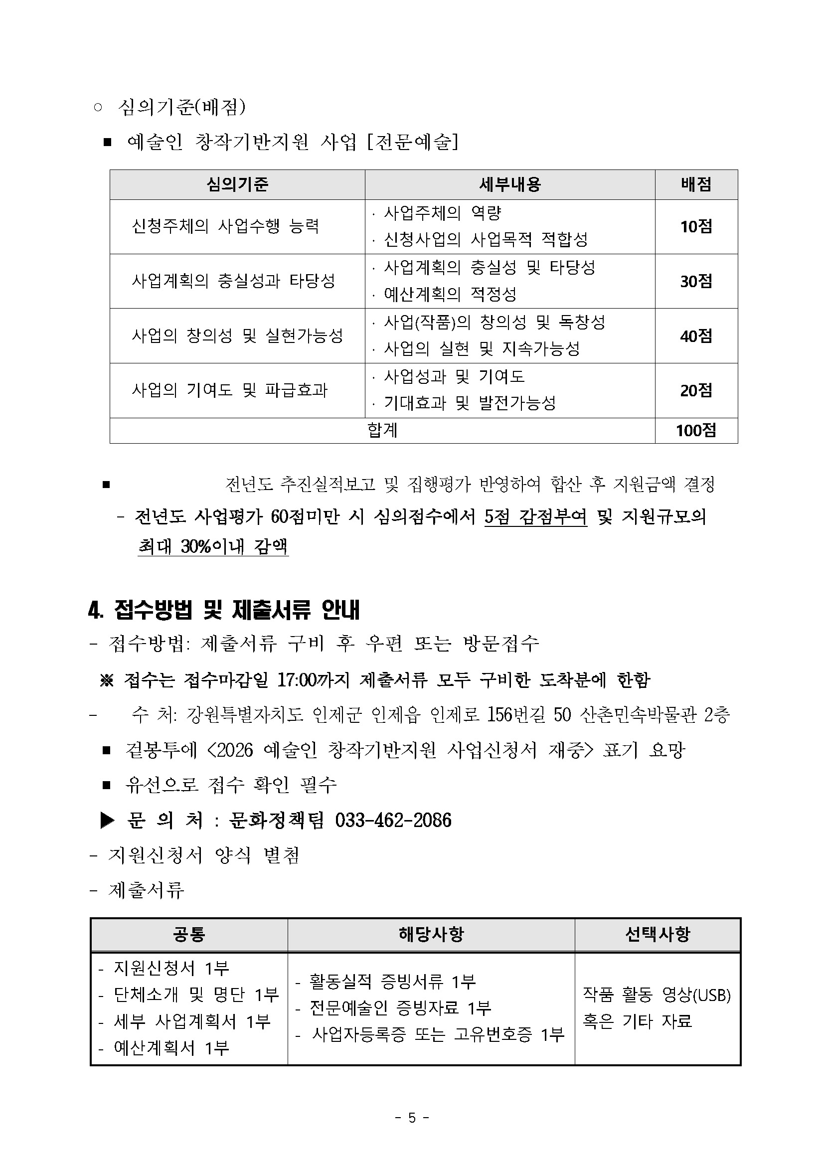 2026 예술인 창작기반지원 사업[전문예술] 추가 모집 공고