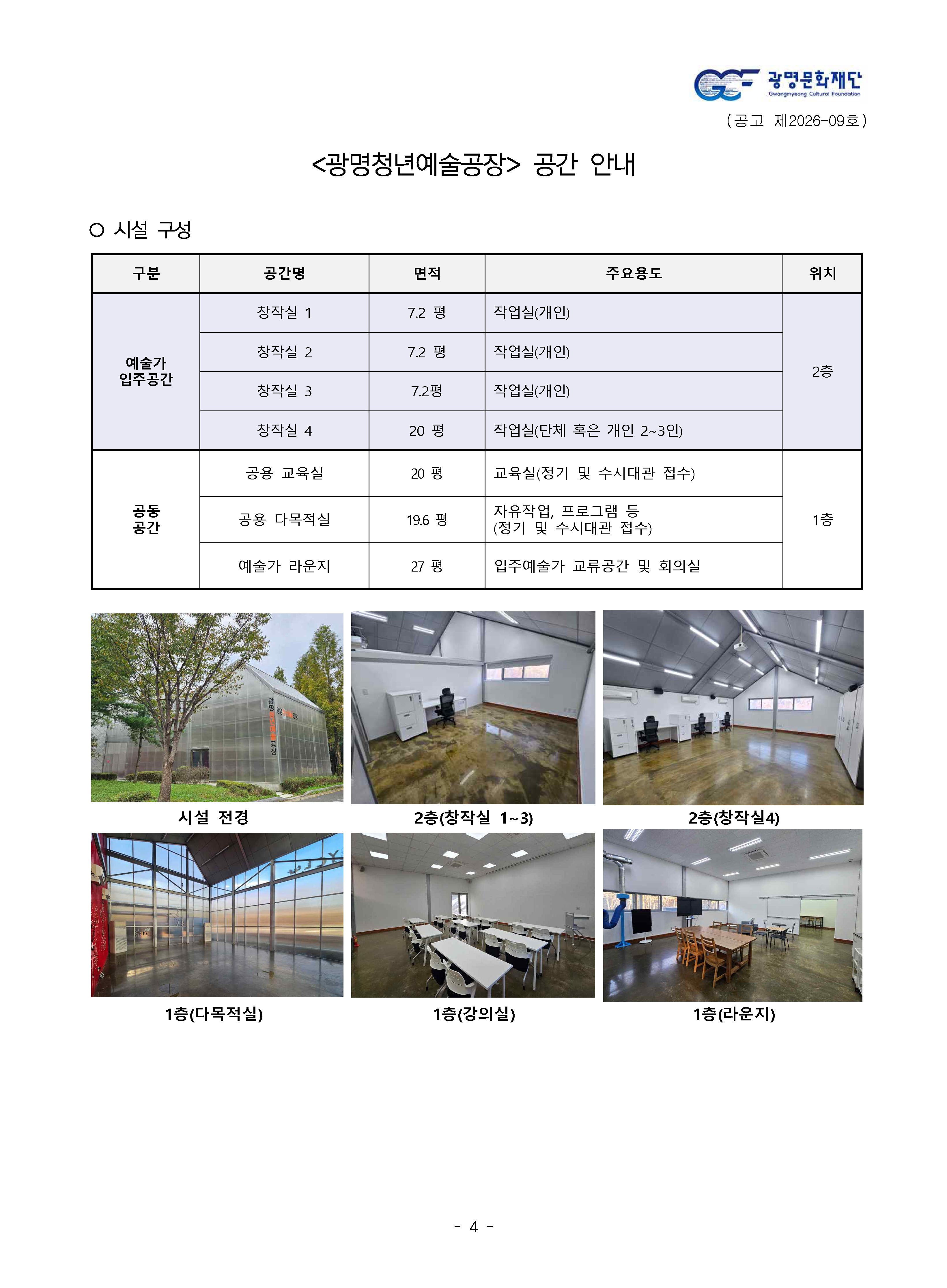 [회원등록공고] [광명문화재단] <광명청년예술공장> 2기 입주작가 모집
