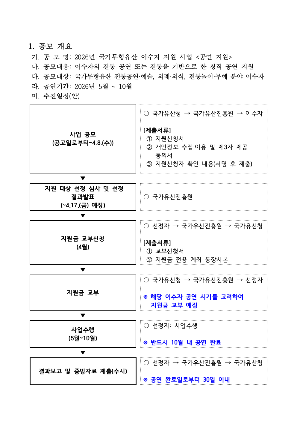 2026년 국가무형유산 이수자 지원 사업 공연 지원 공모 안내