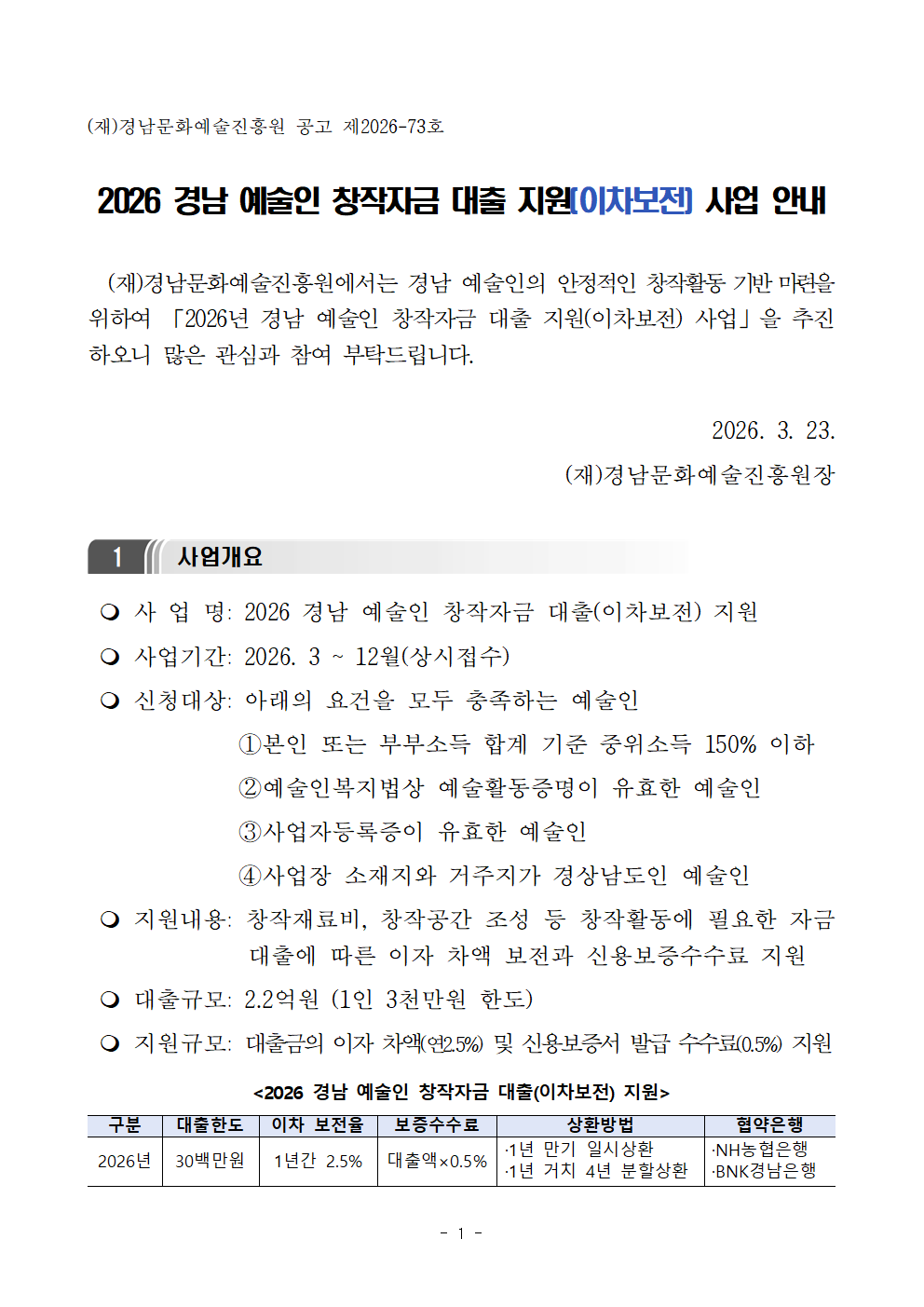 20260324122357_붙임1. 2026 경남예술인 창작자금 대출 지원이차보전 사업 공고문.hwp