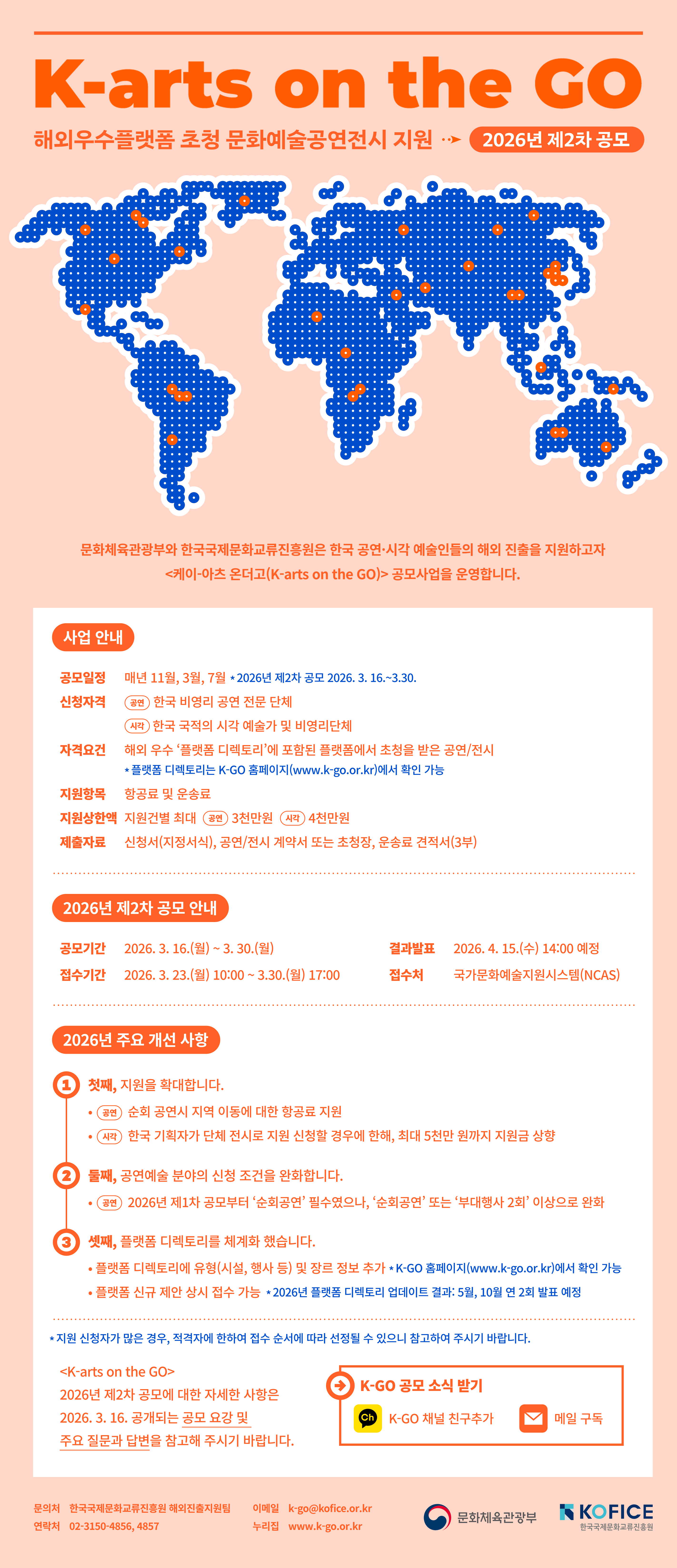 <해외우수플랫폼 초청 문화예술공연전시 지원(K-arts on the GO)> 2026년 제2차 공모 개최