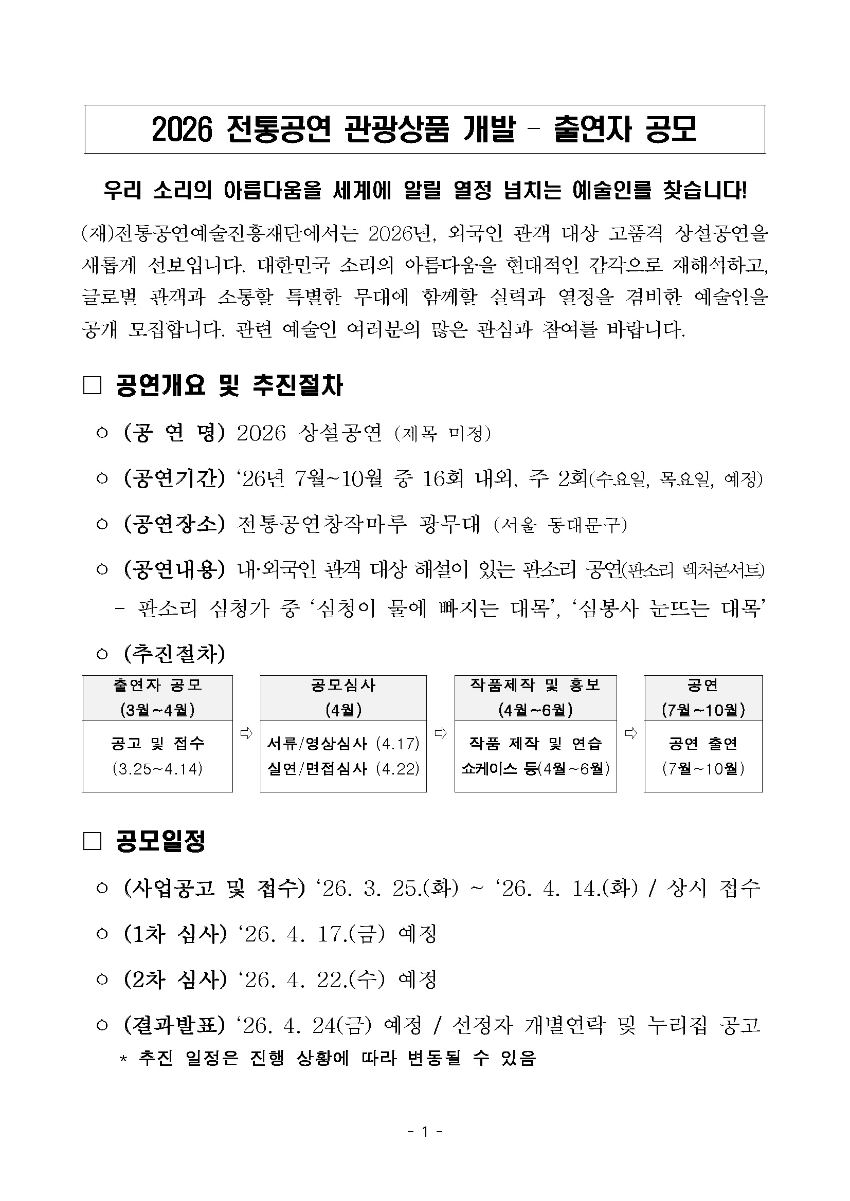 20260325103056_[붙임1] 공고문-2026 전통공연 관광상품 개발 출연자 공모.pdf