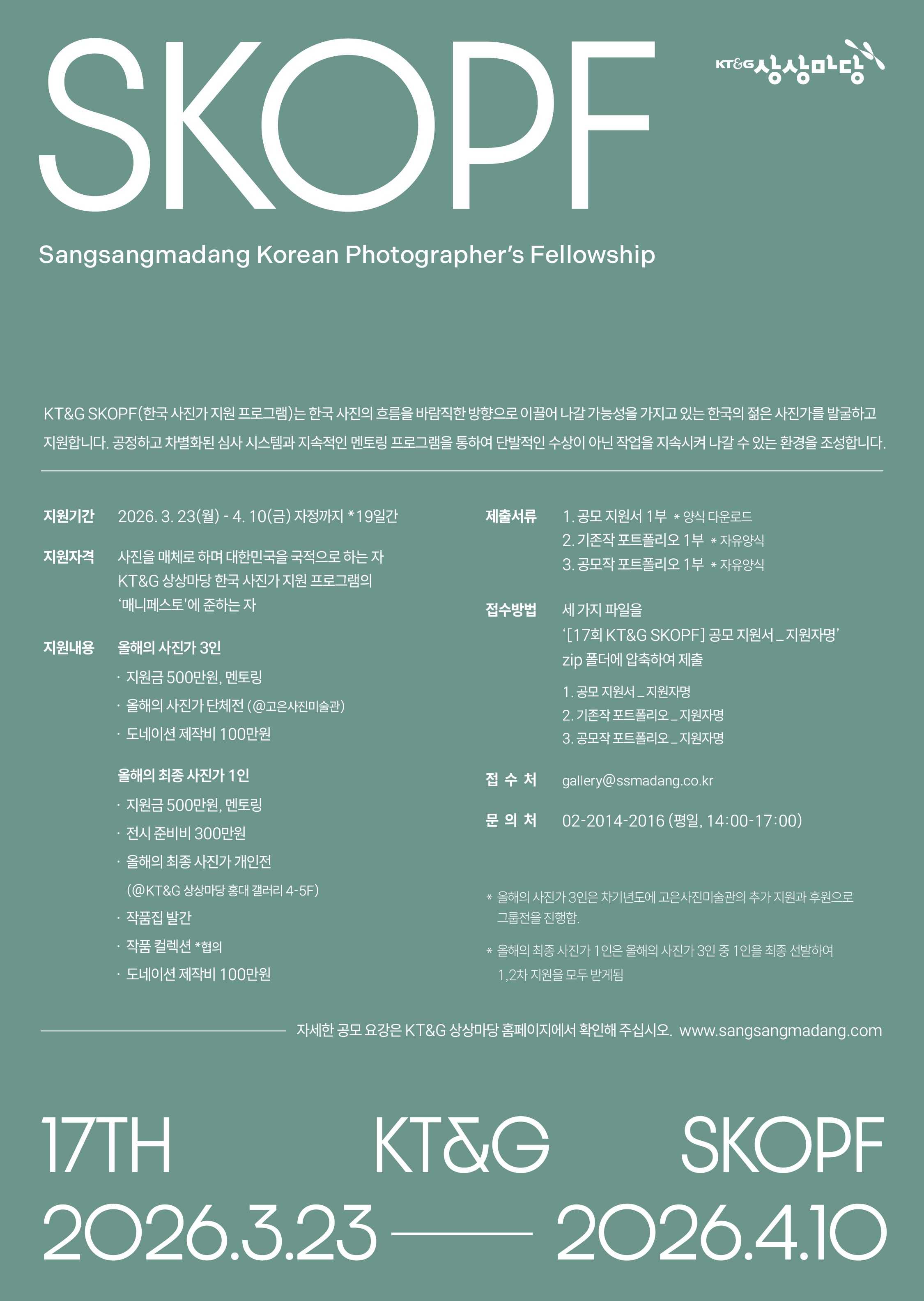 제17회 KT&G 상상마당 한국 사진가 지원 프로그램(17th KT&G SKOPF) 공모