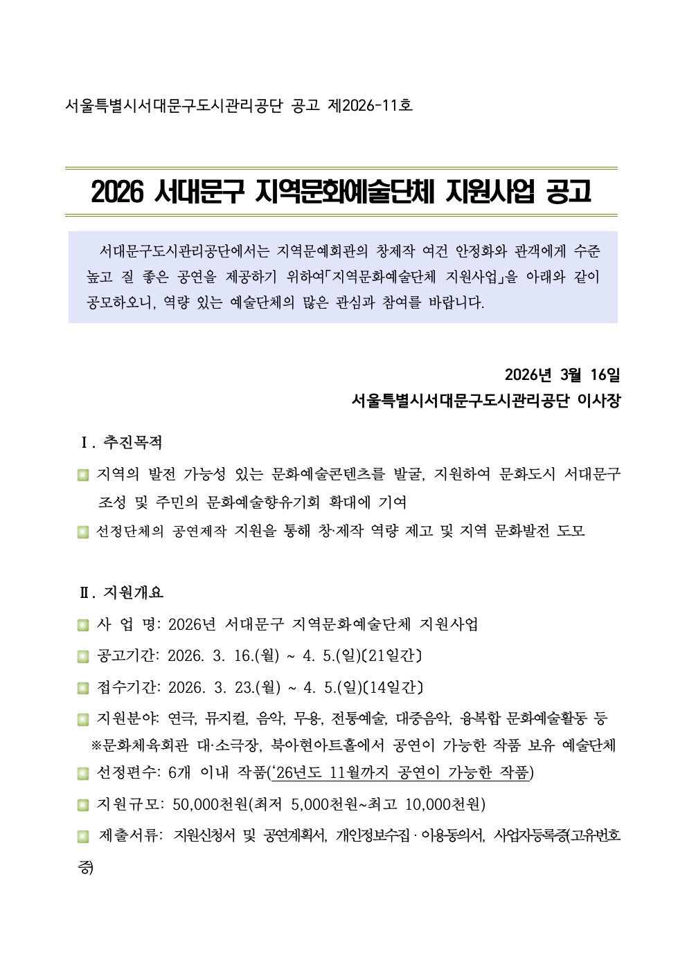 [회원등록공고] 2026 송파 문화예술 활성화 지원사업 모집 공고