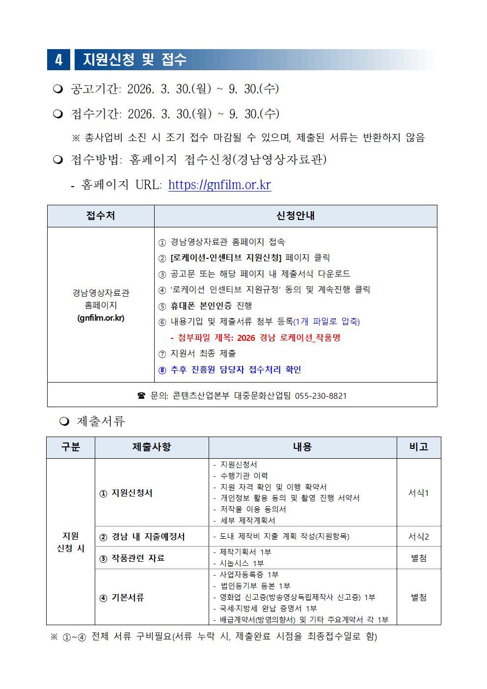 2026 경남 로케이션 인센티브 지원사업 모집 공고