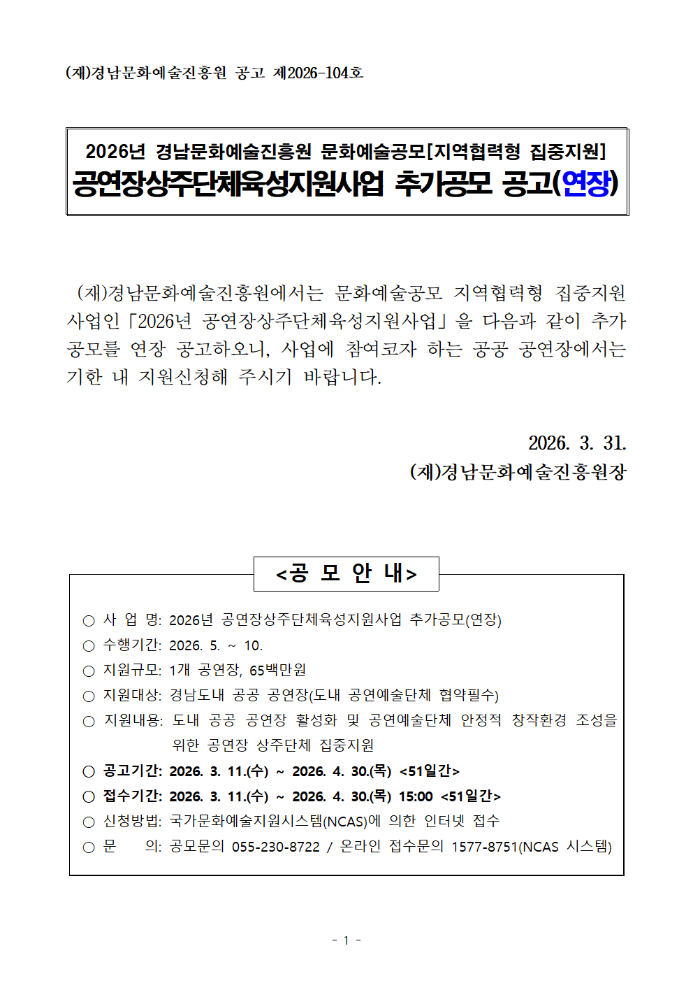 20260401092952_붙임 1. [공고문] 2026 공연장상주단체육성지원사업 추가공모 연장 공고문.hwp