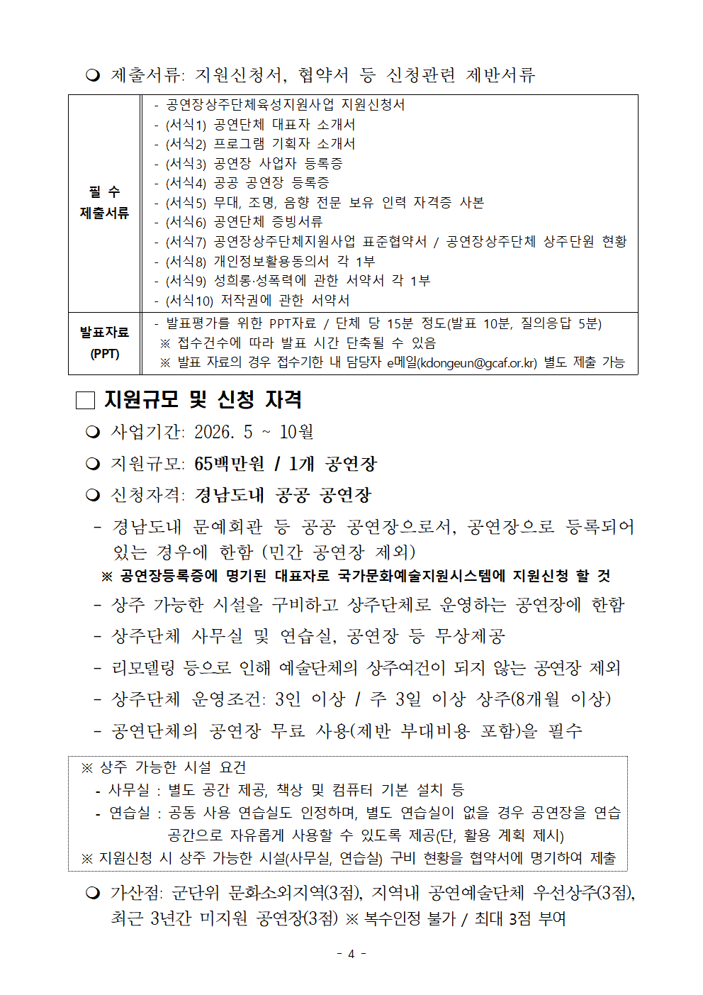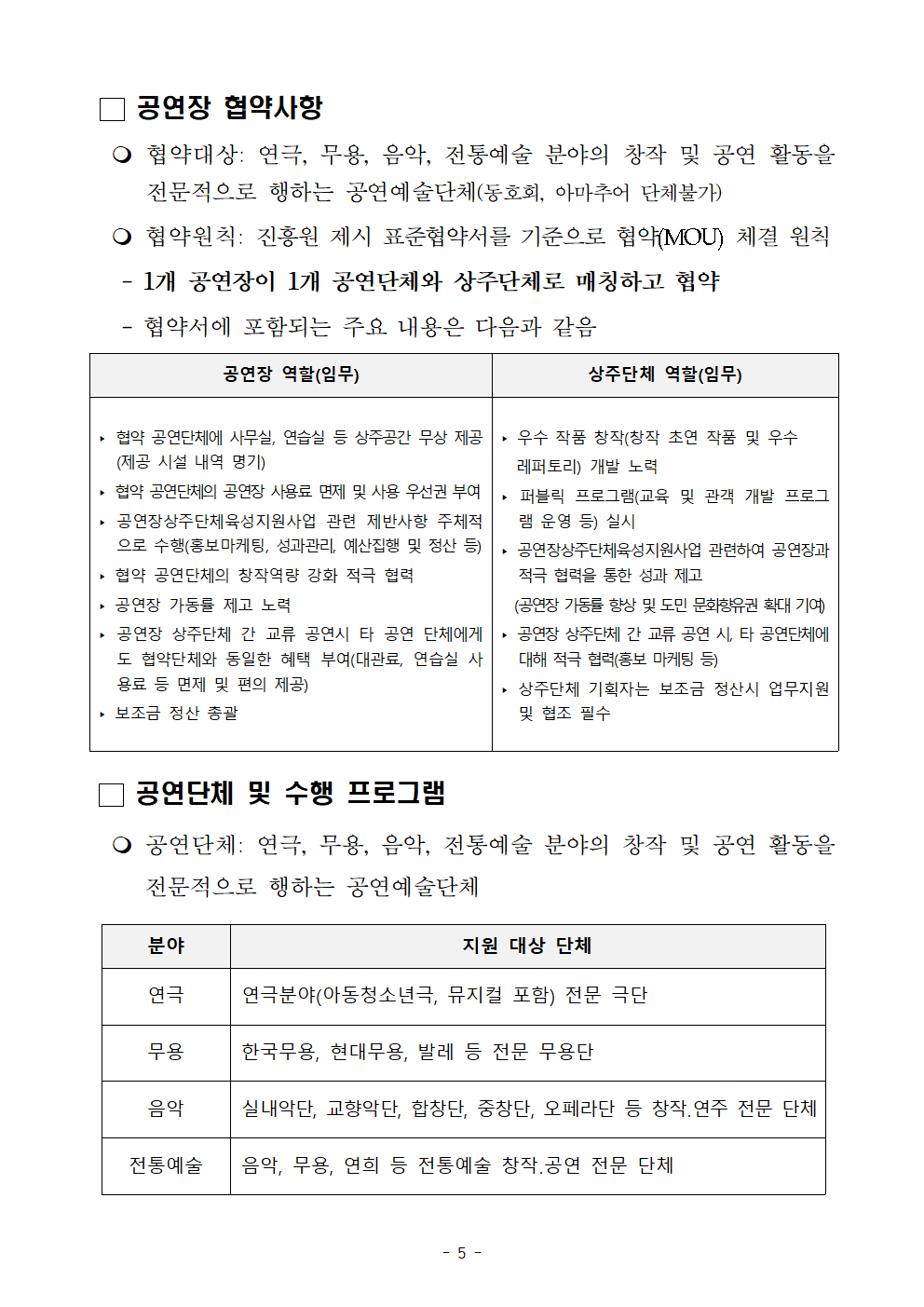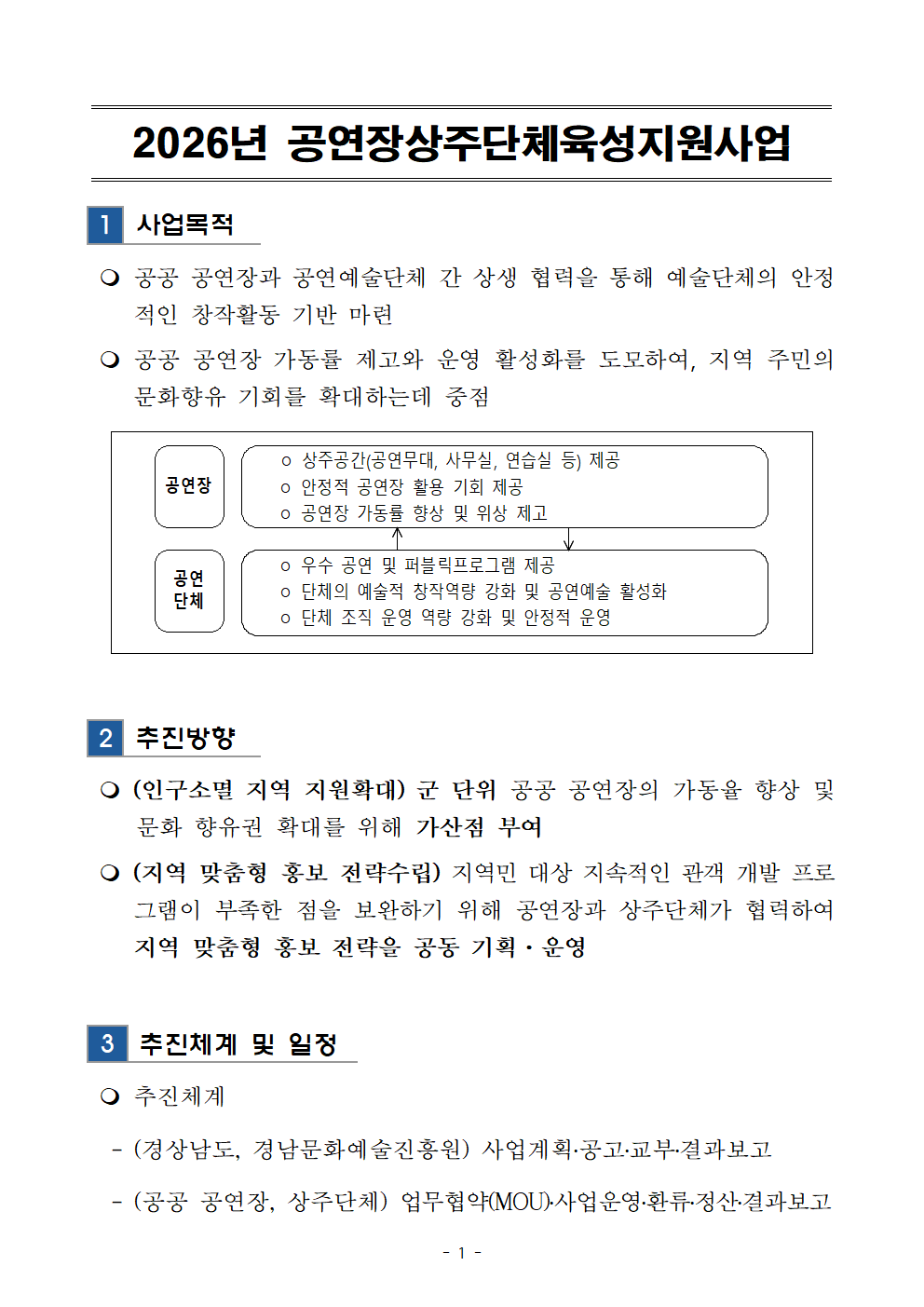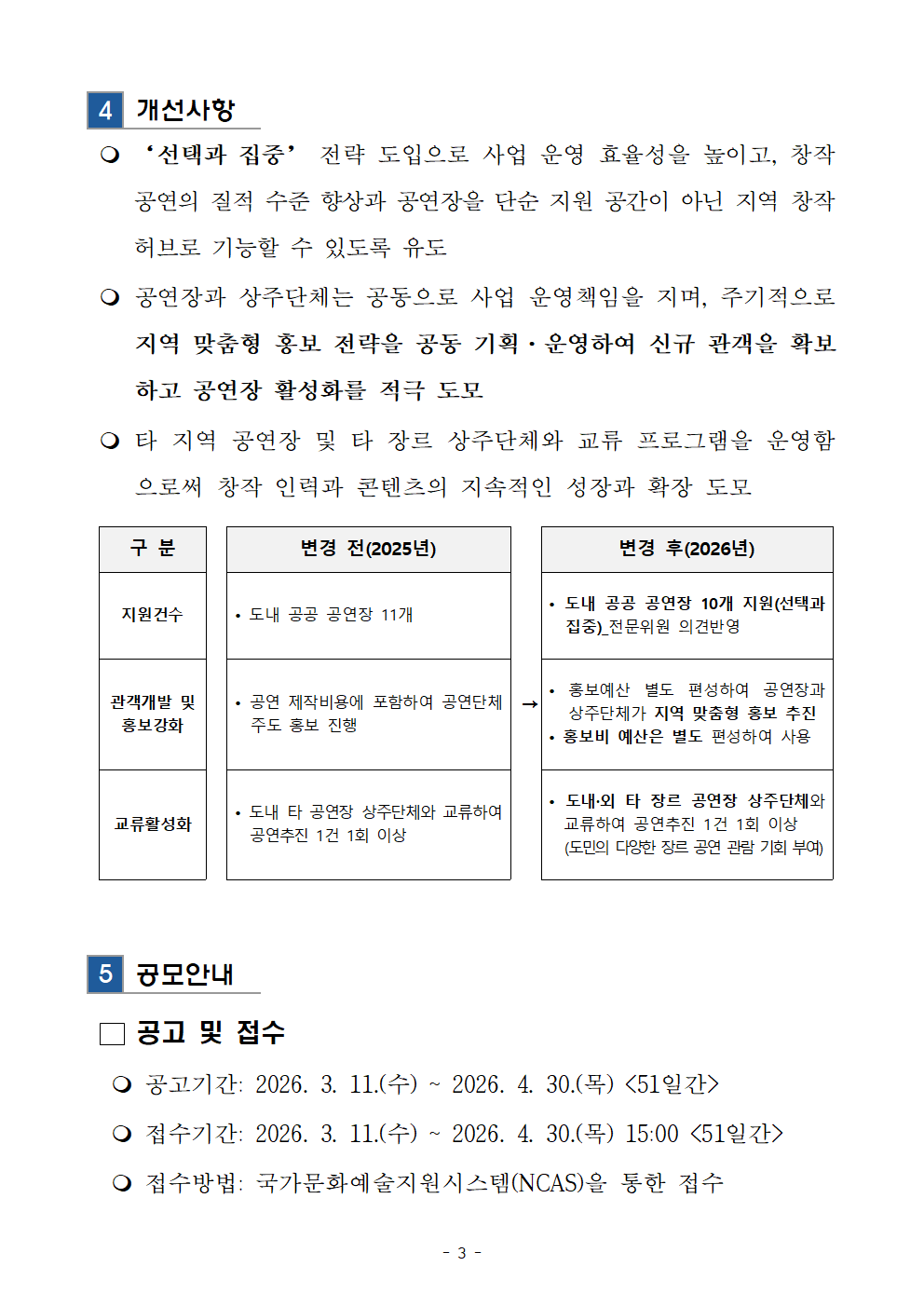 2026 공연장상주단체육성지원사업 추가공모 공고문