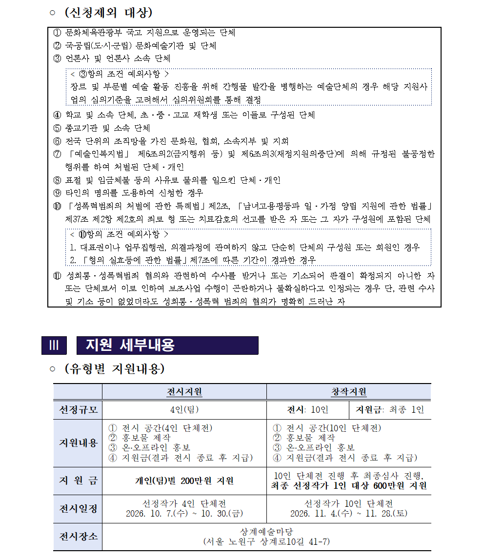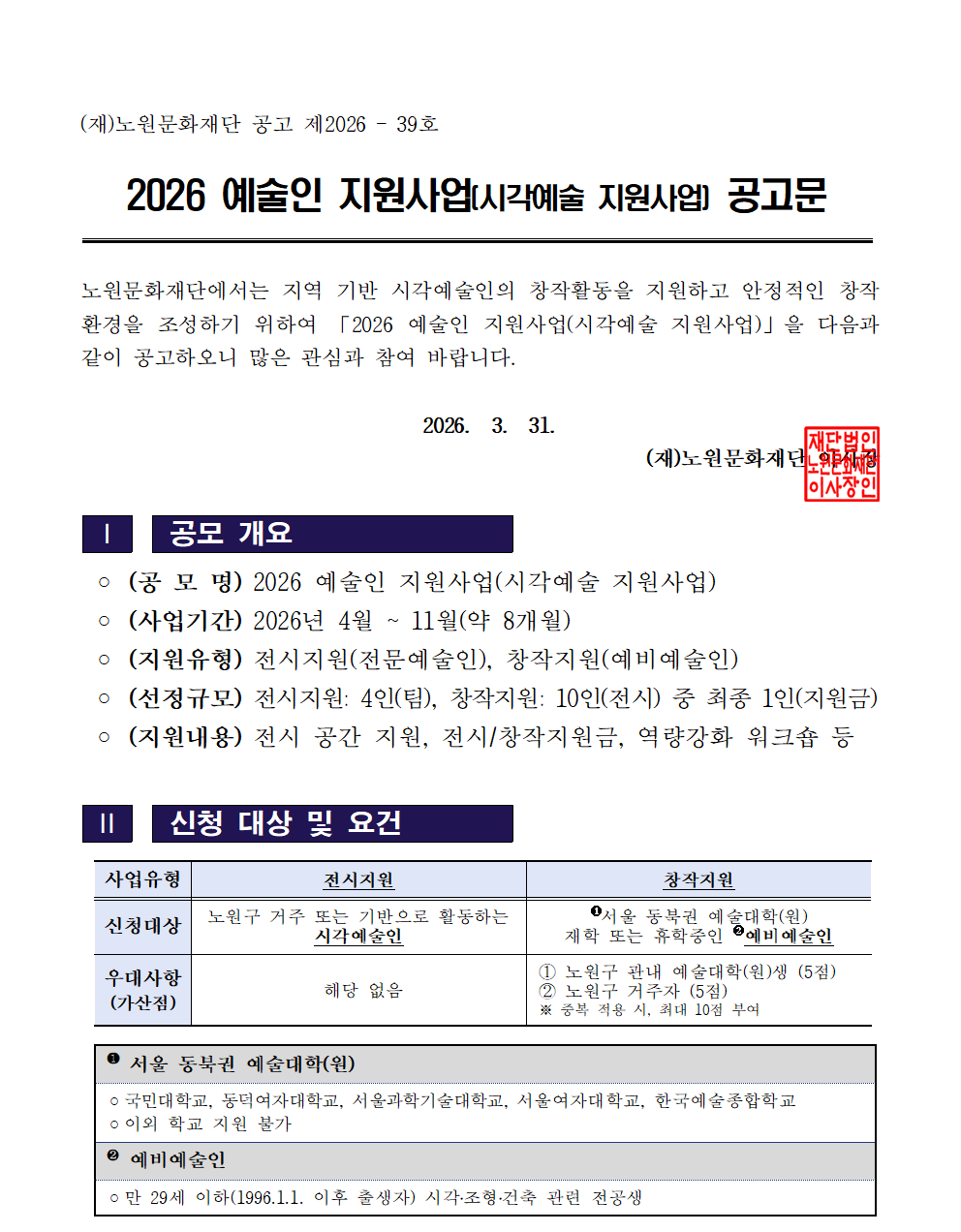 2026 예술인 지원사업(시각예술 지원사업) 공모 (~4/24 18:00)