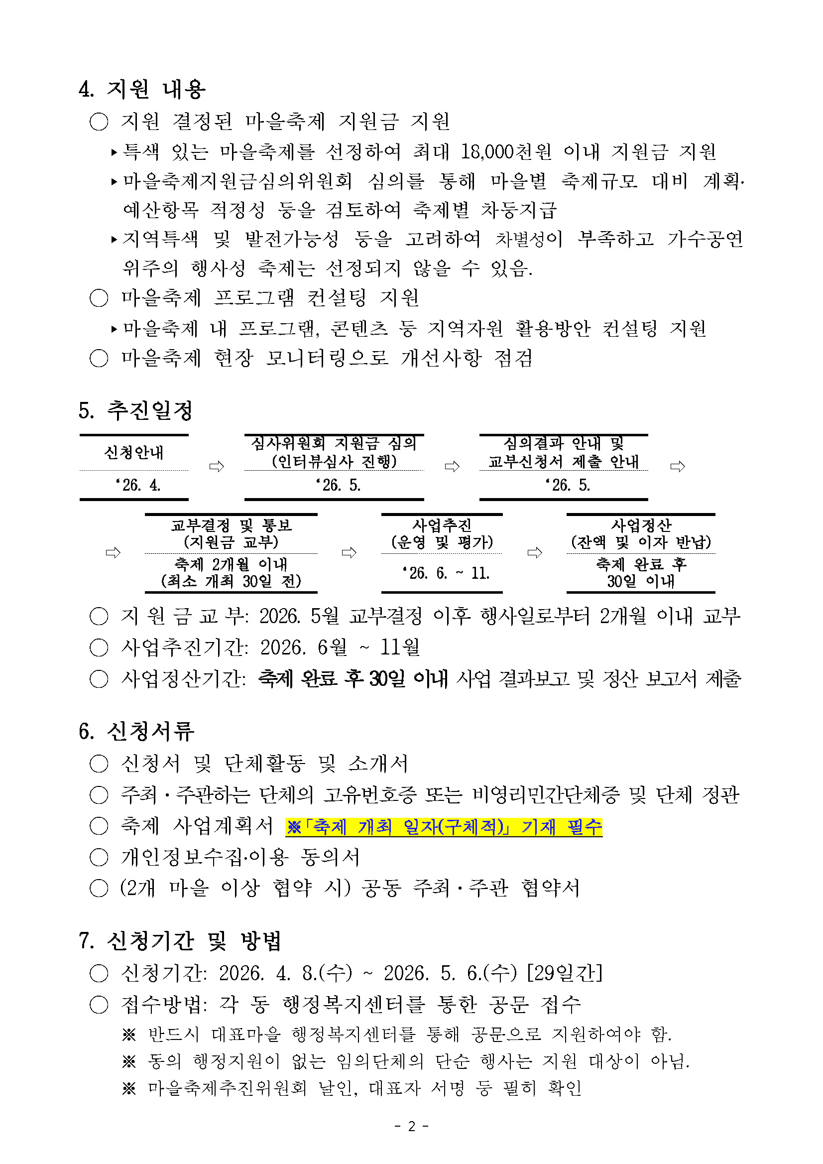 2026 문화예술 마을축제 지원사업 공고 안내 N